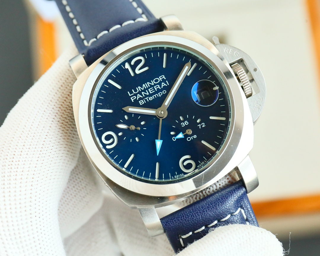 Panerai Luminor BiTempo Blue Dial Replica – Dual-Time Elegance, Leather-Wrapped Sophistication