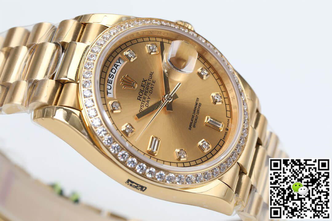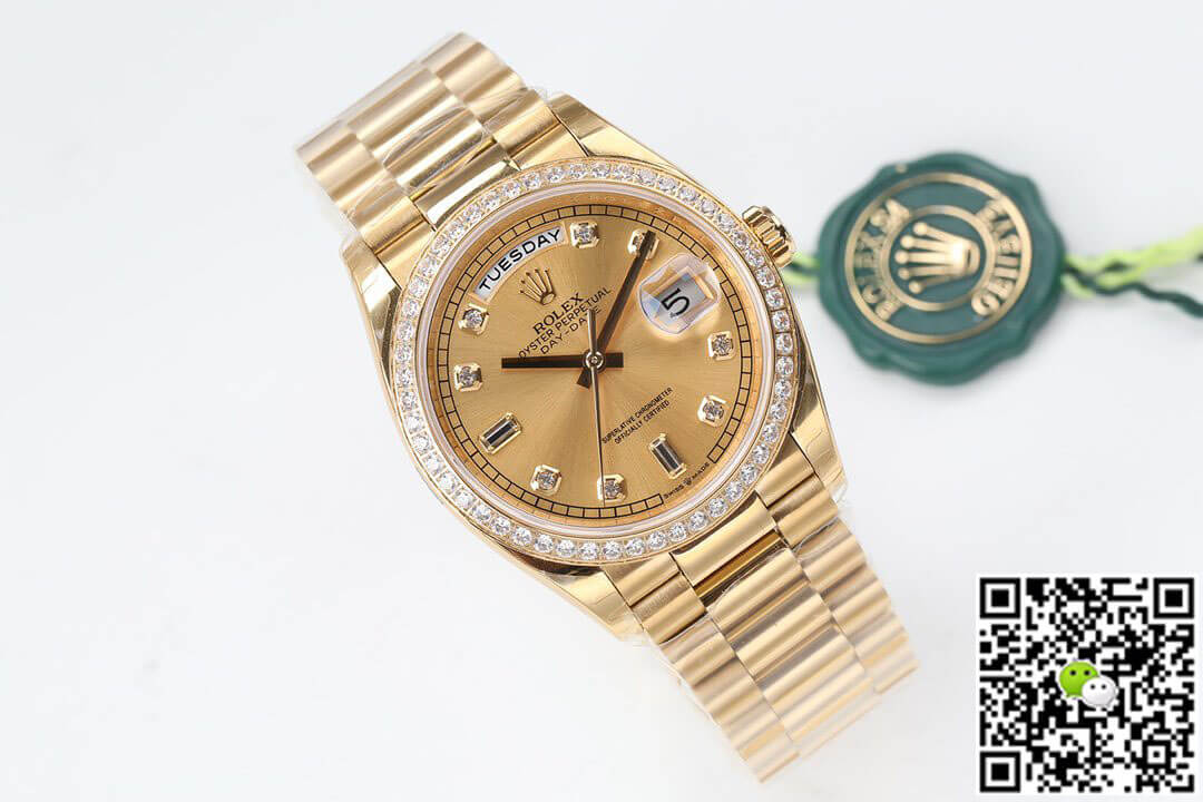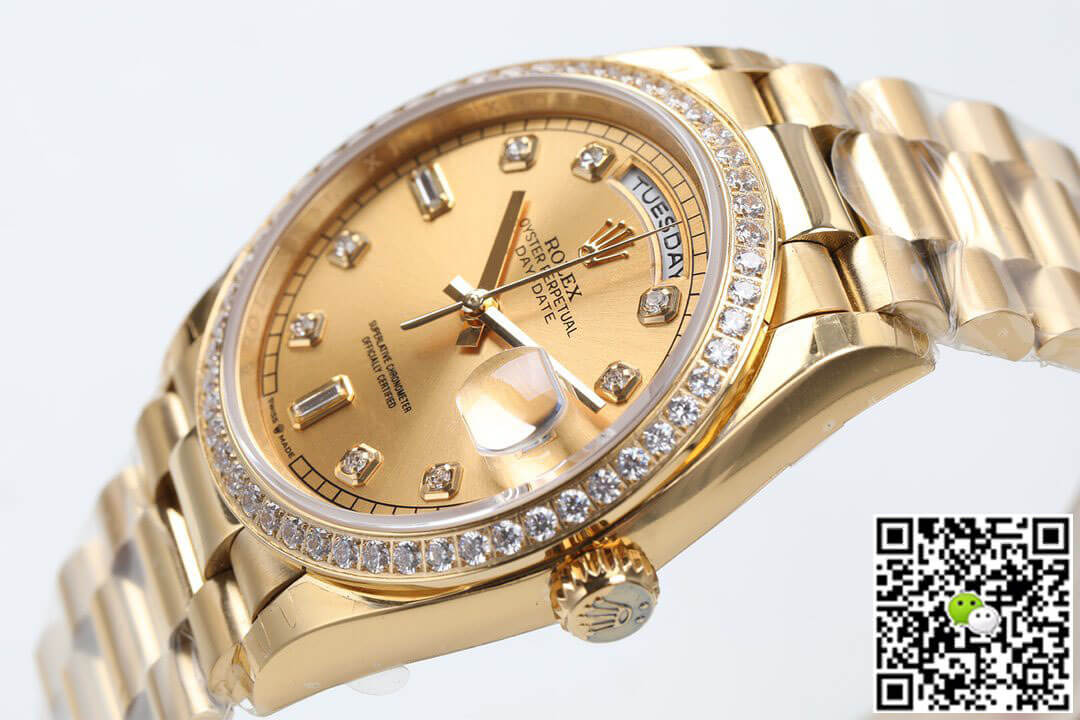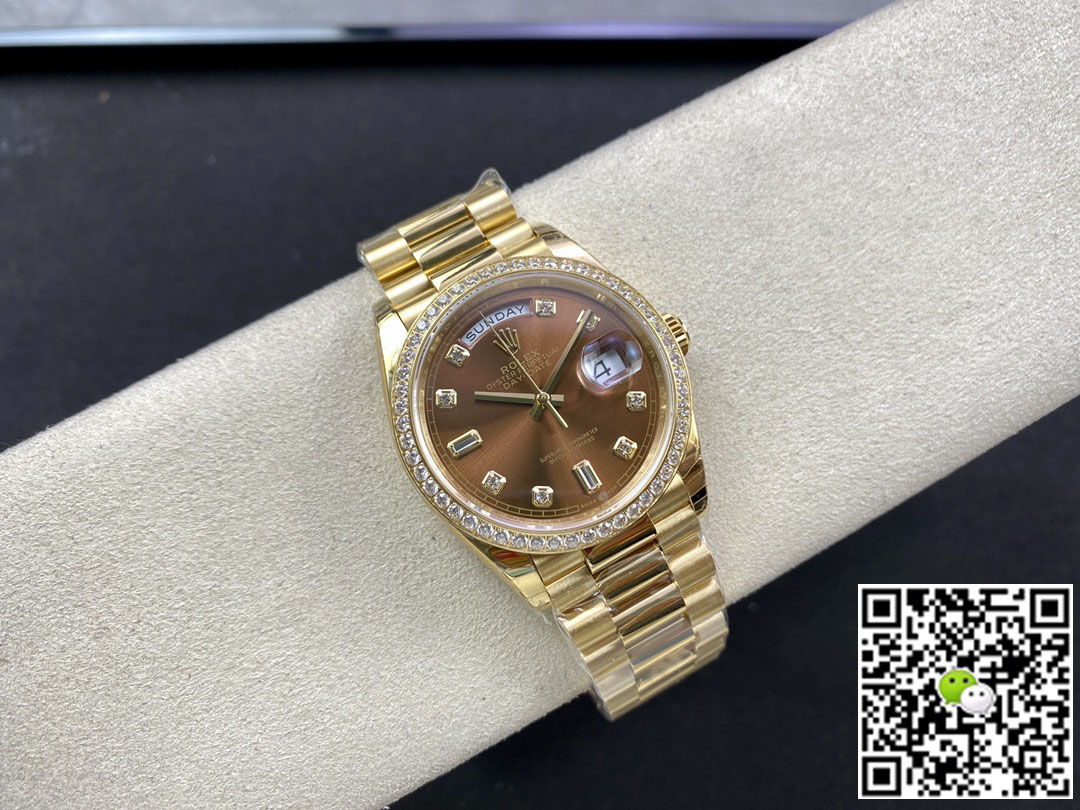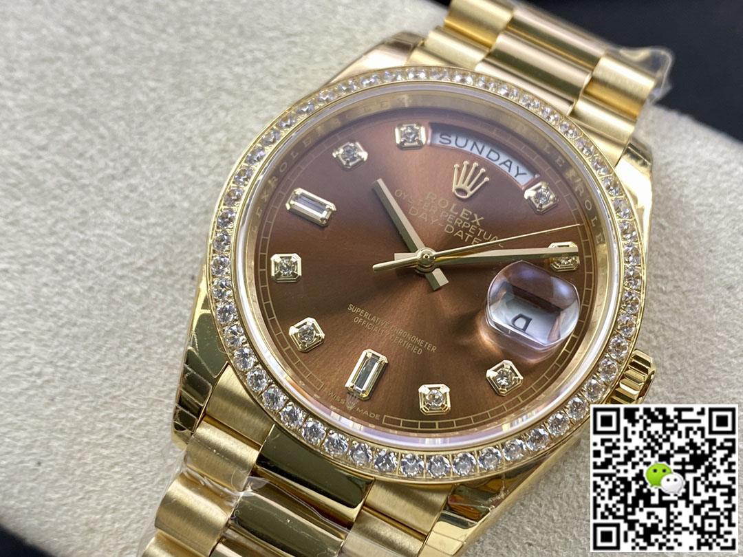 Replica Rolex Date-Just 36mm 1:1 Best Edition Gray Dial Diamond Markers 18K Gold Wrapped Swiss ETA3135