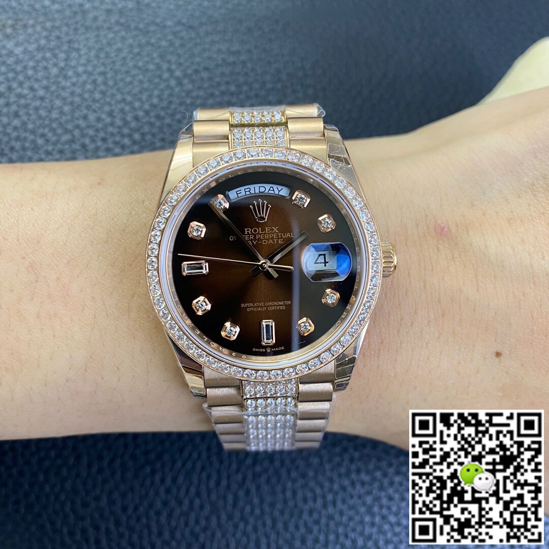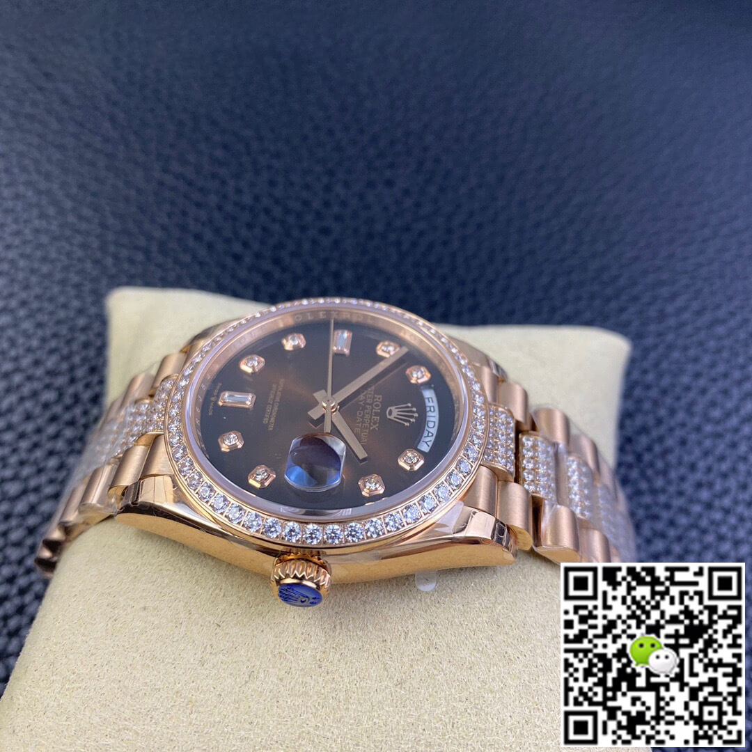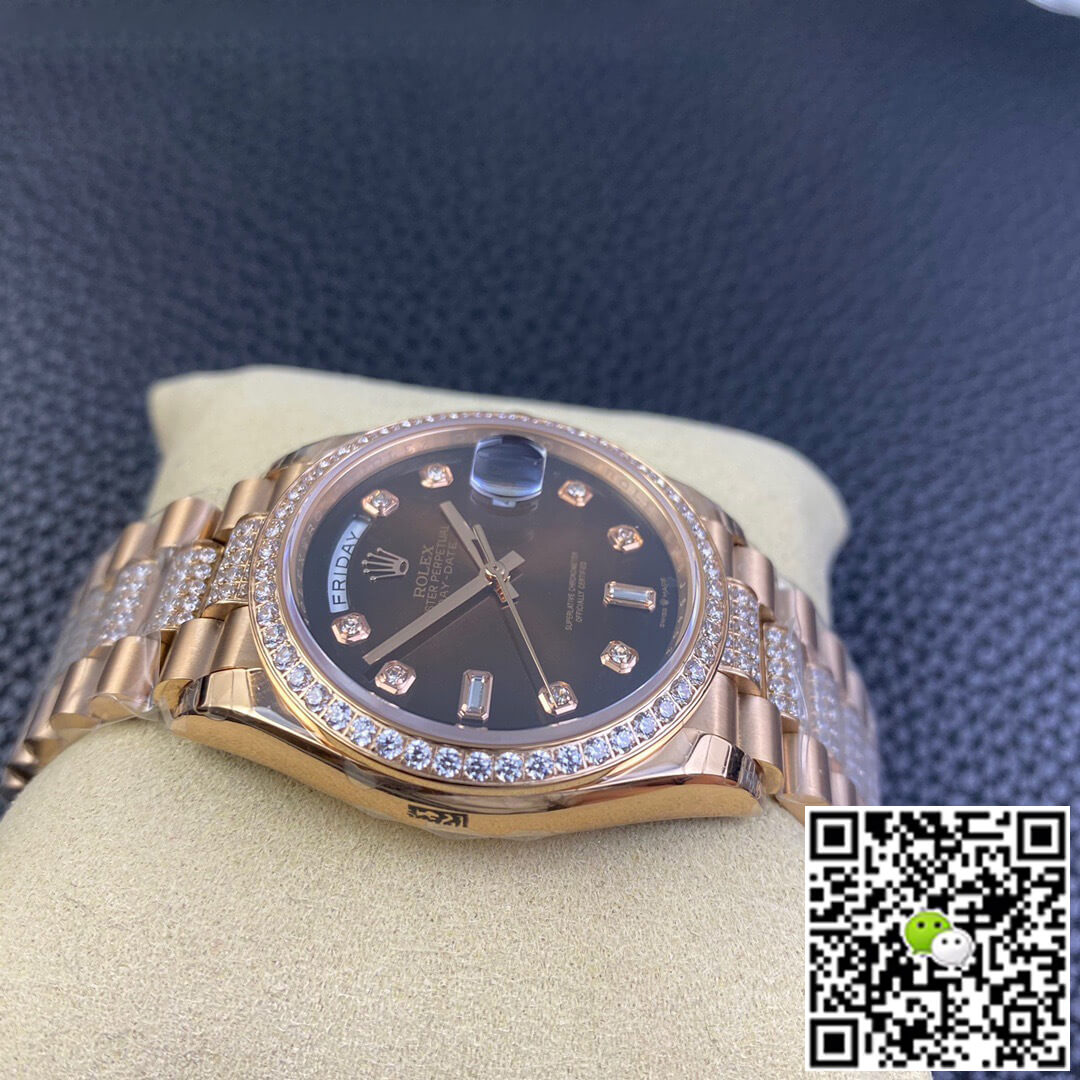 Replica Rolex Date-Just 36mm 1:1 Best Edition Gray Dial Diamond Markers 18K Gold Wrapped Swiss ETA3135